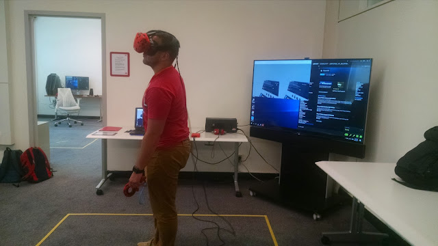 Avastasin vahepeal ka virtuaalreaalsuse maailma (pildil ei ole mina). Siinses raamatukogus on võimalik käia neid aegajalt proovimas ning kas nendega kasulikku tööd teha (mida mina ei tee) või siis niisama mängida. Selgus, et soovitatav aeg on 20-30 minutit, aga ma esimesel korral sattusin nii ekstaasi, et seisin ja tantsisin seal ringi 2 tundi.